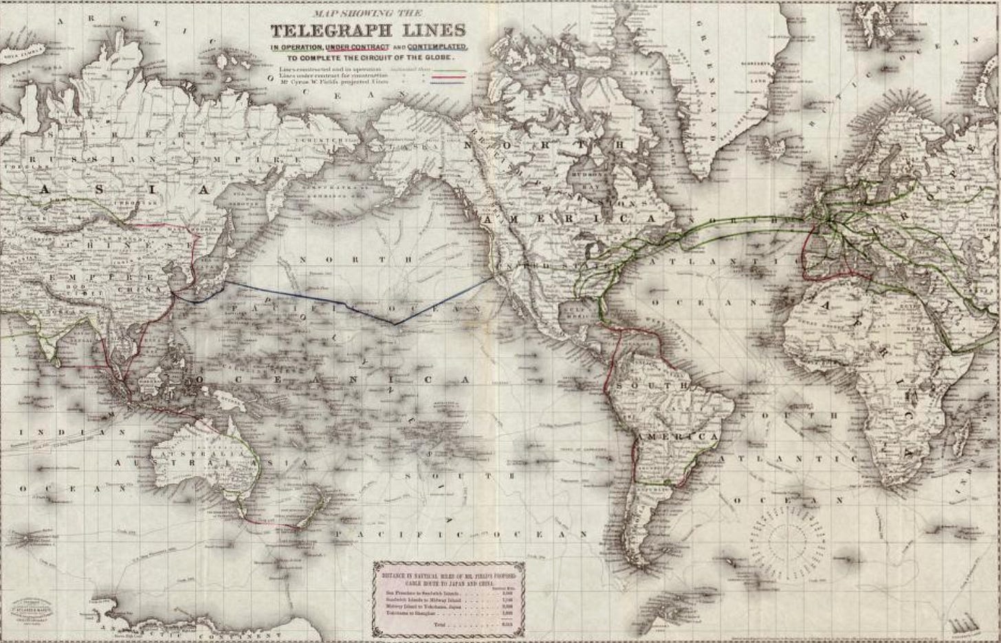 First subsea telegraph lines (1871)